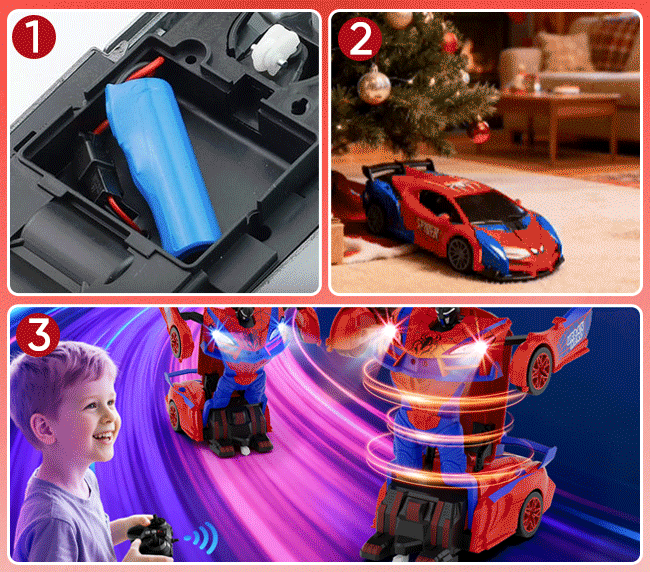 Enjoy fast driving, 360° spins, and exciting robot moves that bring action to life!